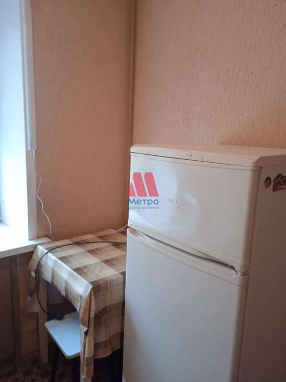 На кухне гарнитур, холодильник. В комнате 2 спальных места, шкаф, стол, стул компьютерный, стол-книжка. Мебель не новая, но всё необходимое для проживания есть.