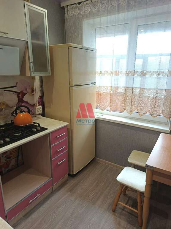 В квартире есть все необходимое для проживания: на кухне гарнитур, стулья, Холодильник.