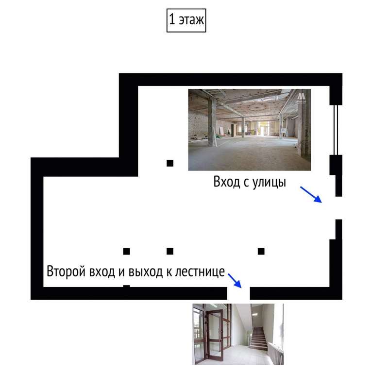 Помещение расположено на первом этаже и имеет 2 входа.