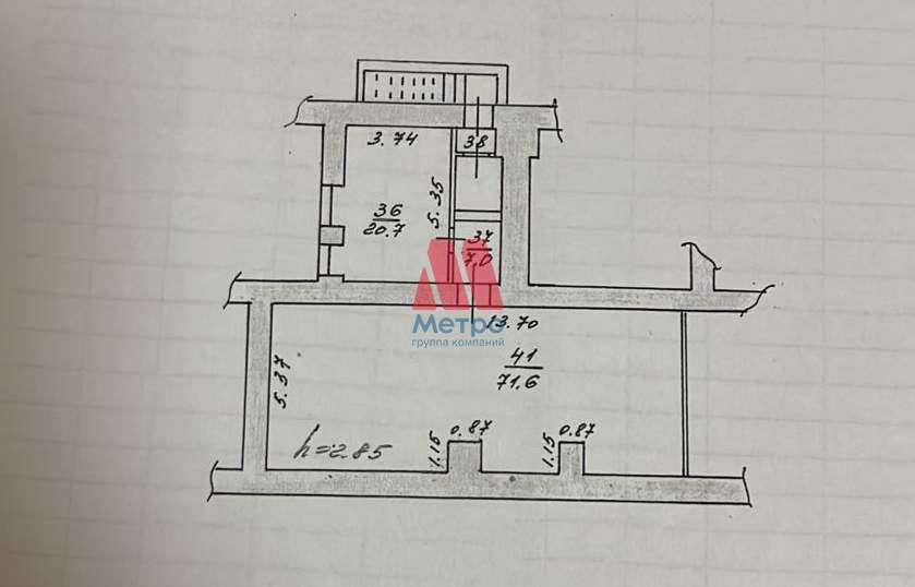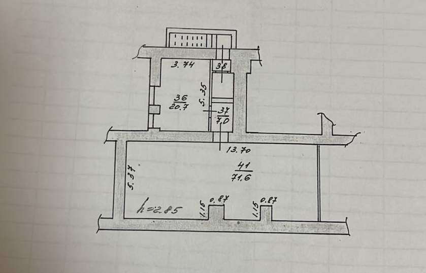 Высота потолка 2,85 м.