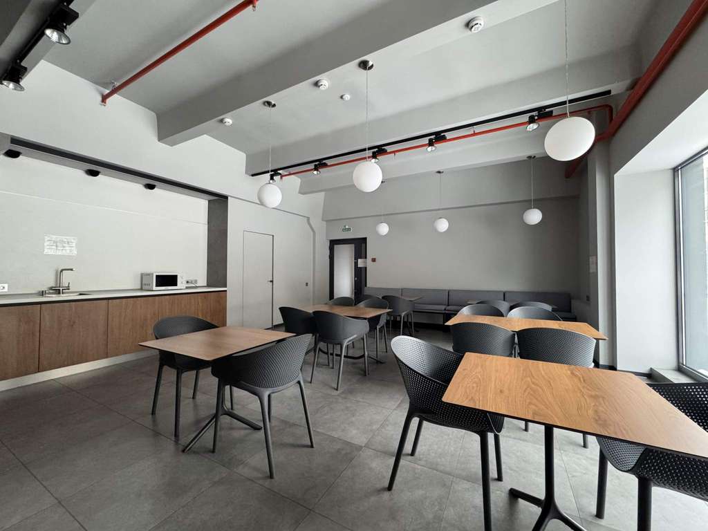 Стильный офис формата openspace с большой lounge-зоной 300м2. Прекрасное местоположение с удобной транспортной доступностью и собственной парковкой.