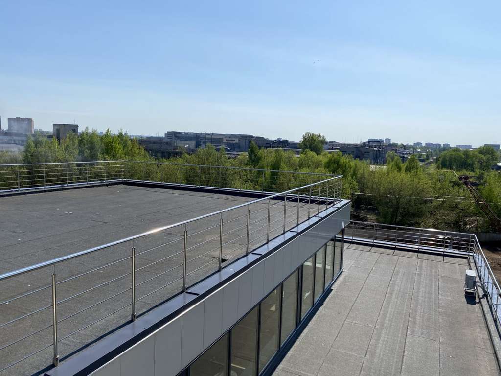 Многоярусная терраса на крыше как место релаксации или рабочее пространство с видом на Волгу.