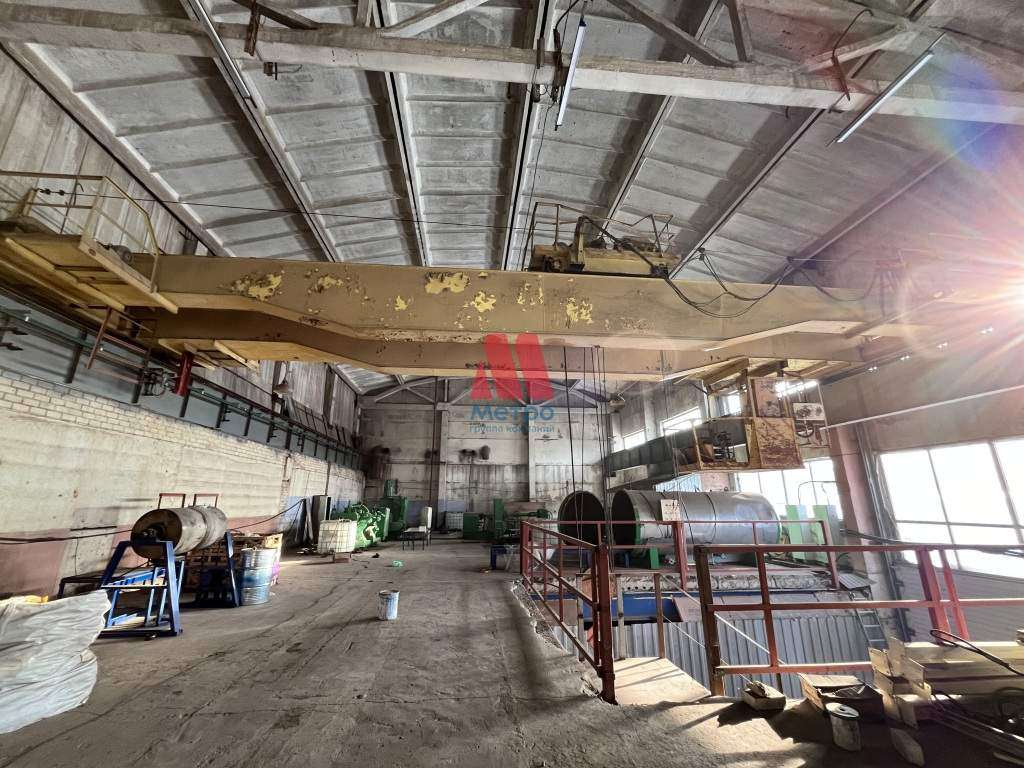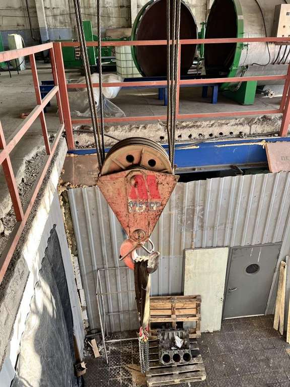 Мостовой кран на 16 тонн, также есть вспомогательный кран на 5 тонн для подъема на 2 этаж