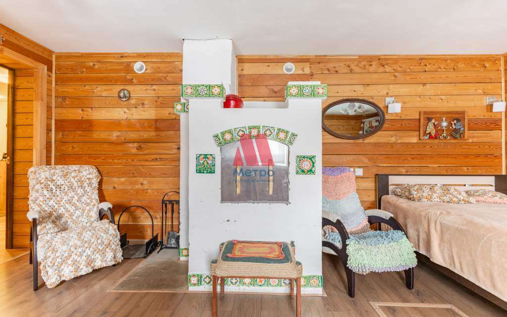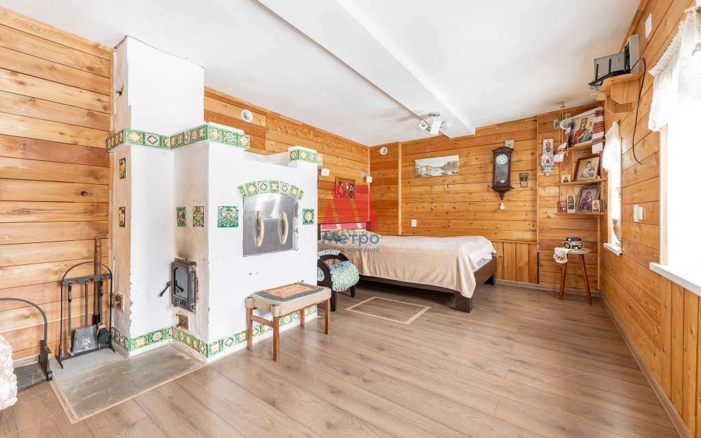 действующая печь, можно для обогрева или готовки. Стены всех комнат отделаны натуральным деревом, планкеном из листвинницы.