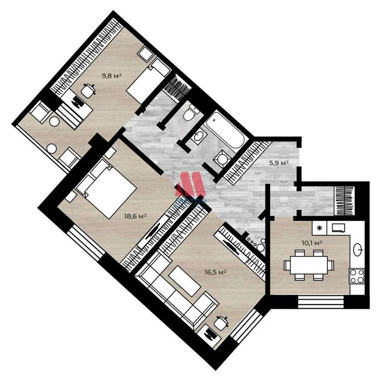 -улучшенная планировка, жилая площадь 43м;