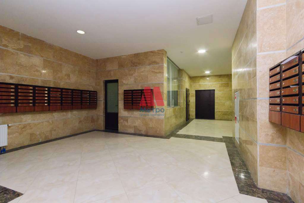 Квартира на 17 этаже 19 этажного, кирпичного дома, общая площадь 50,2 м2, кухня 14,5 м2 и комната 20, м2, высота потолков 3 м, без балкона.
