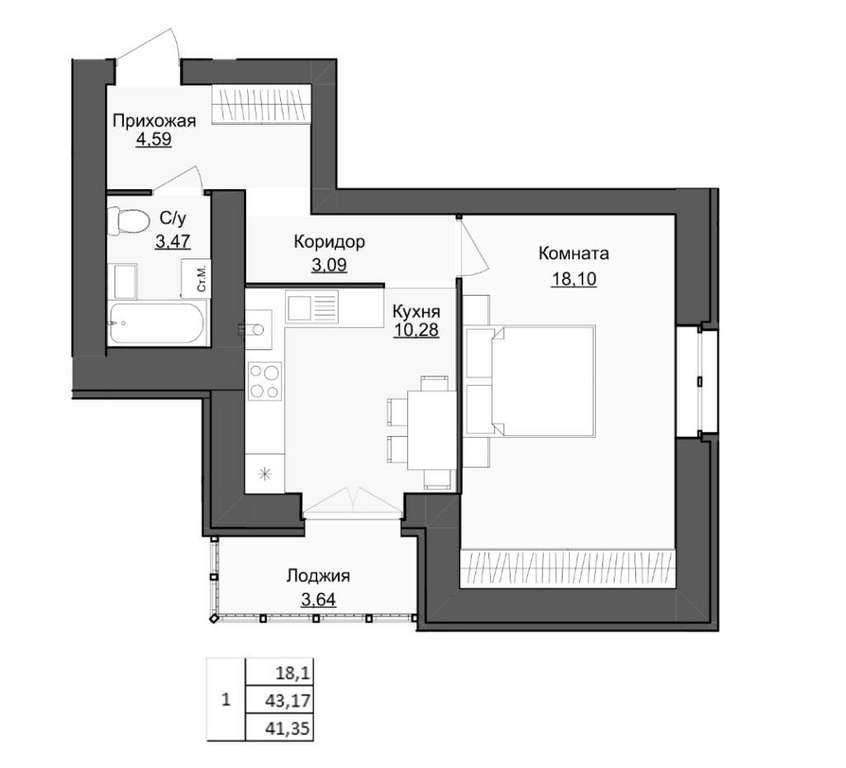 - 43.17 м2