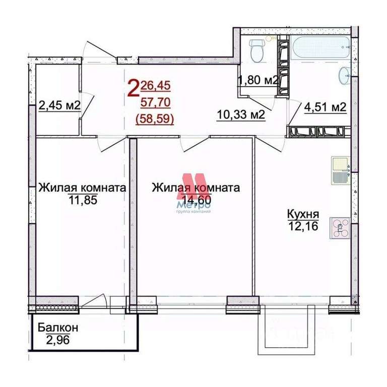 - 58.59 м2