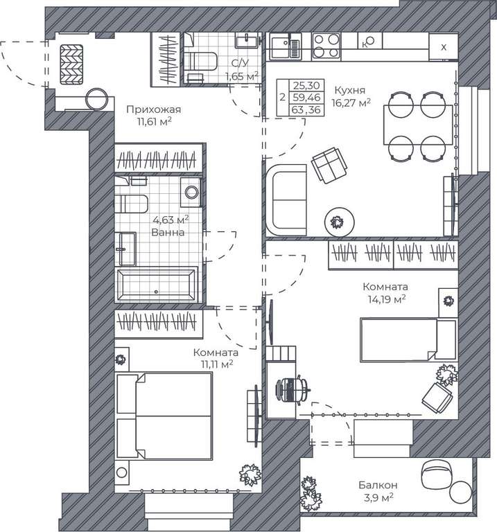 - 63.36 м2