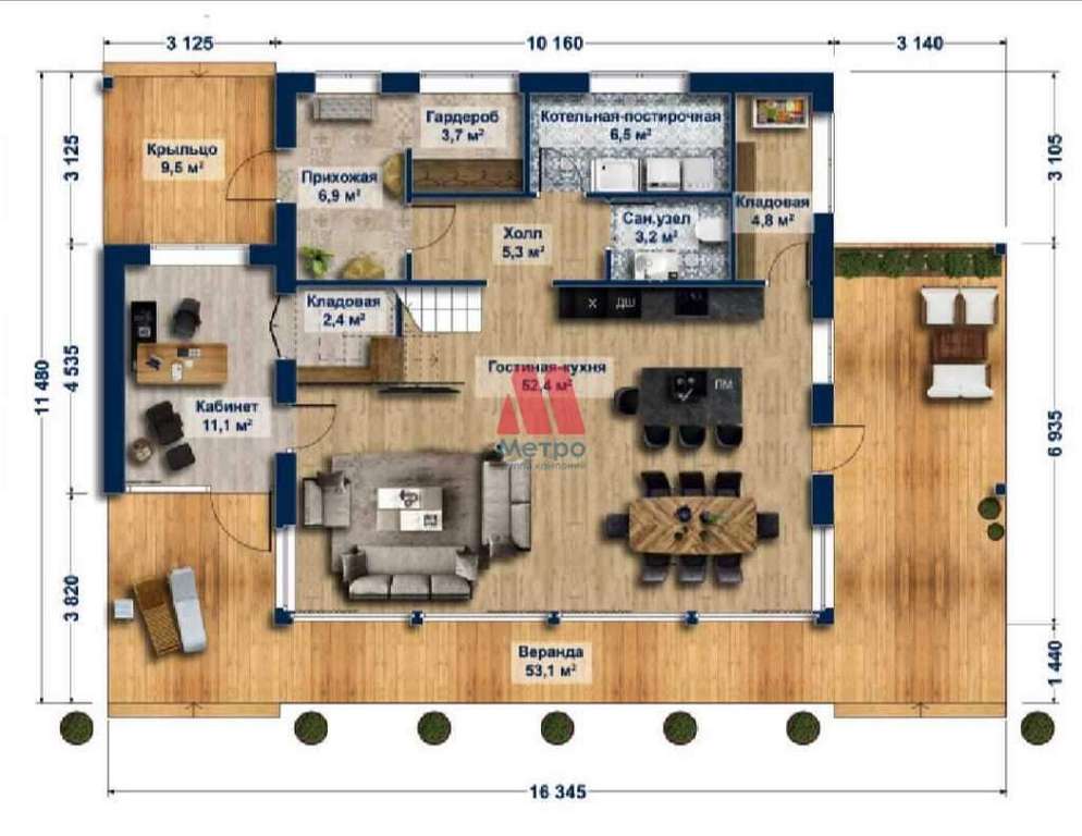 - Площадь дома