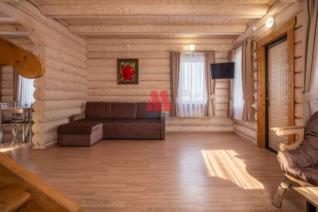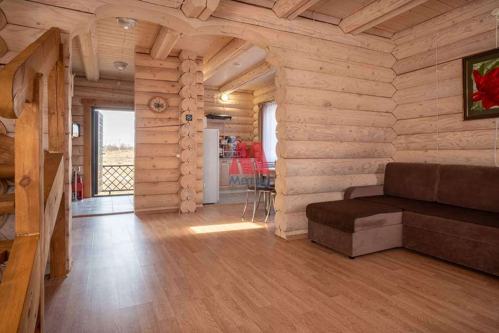 Продаётся коттедж 85,1 кв м + 7,4 кв м терраса и 7,5 кв м из оцилиндрованного бревна, бревно обработано пропиткой и внутри и снаружи.