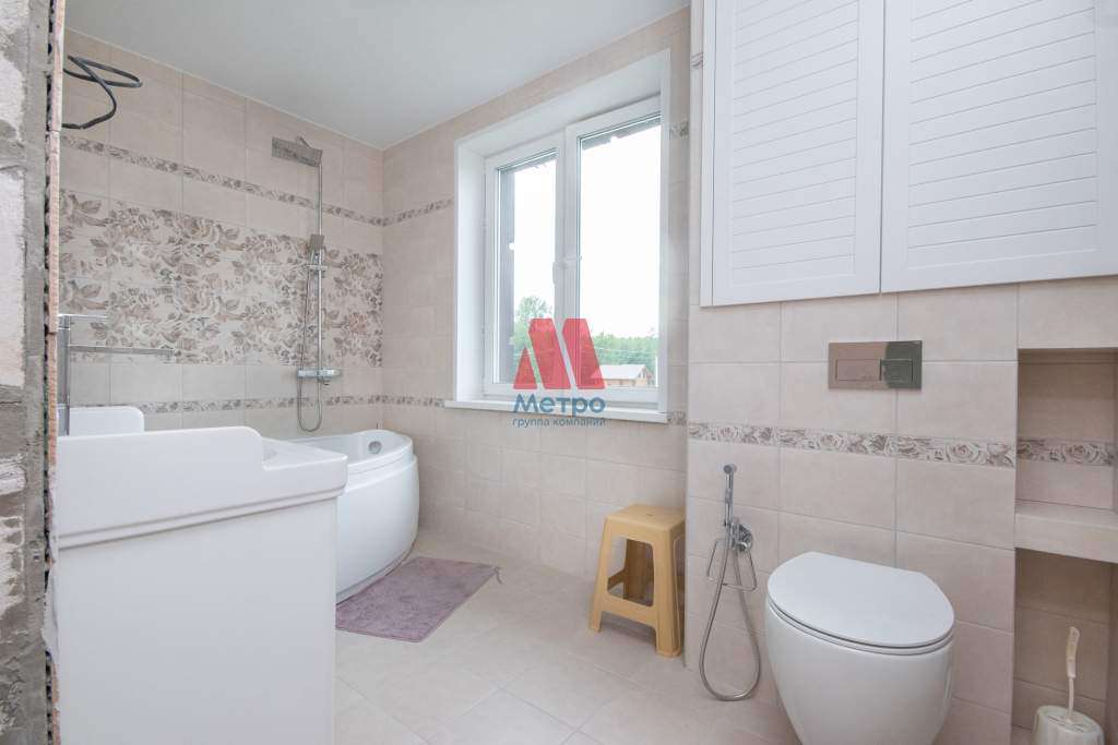 Частично сделан финишный декоративный ремонт: полностью сделаны сан. узлы на обоих этажах, эл. разводка (в соответствии с ГОСТом) под розетки, выключатели, переключатели, видеонаблюдение, сигнализацию, кондиционеры. На втором этаже во всех комнатах поклеены обои, на первом-полы-керамогранит. Использовались только качественные материалы, а просторные комнаты позволяют впустить много света и воздуха.