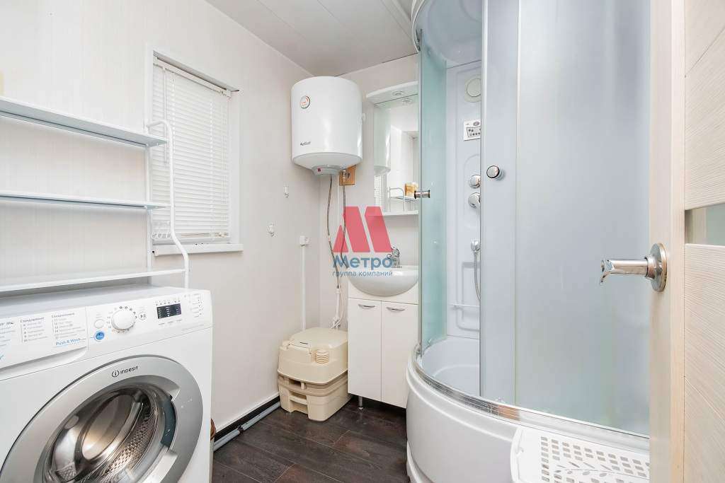 Площадь дома: 50 м, утепление стен 100 мм, кровля и пол 150 мм, слив 50 мм, возможность подвести септик.