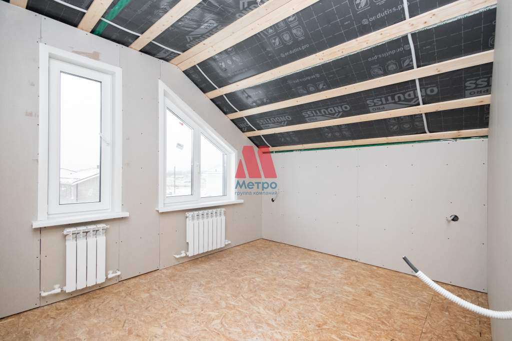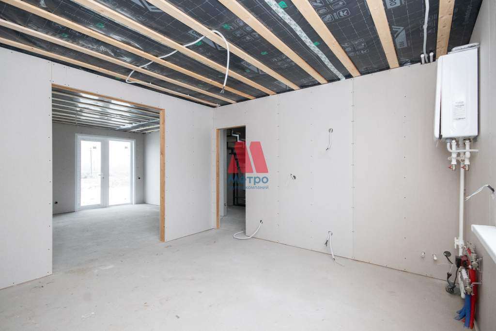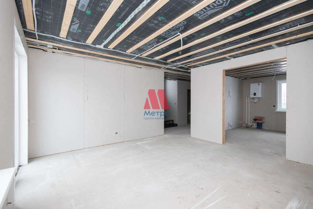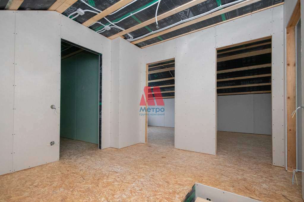 На первом этаже пол - сухая стяжка, на втором этаже - древесно-стружечная плита. Стены обшиты гипсокартоном - идеально ровные под любую отделку.