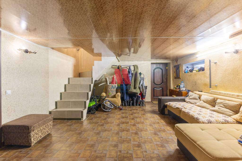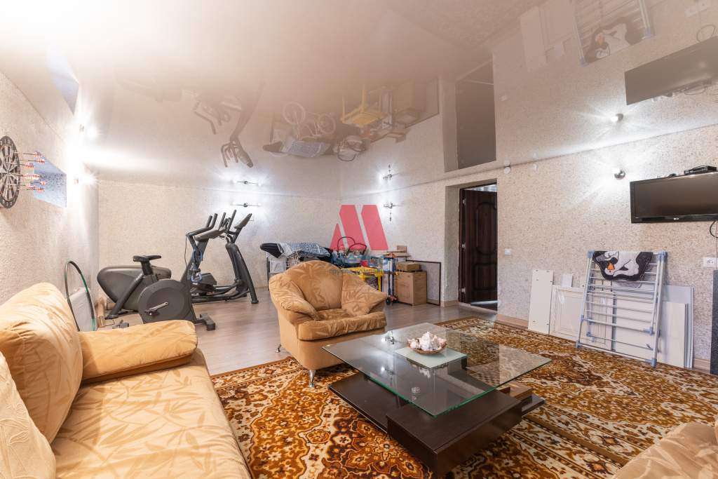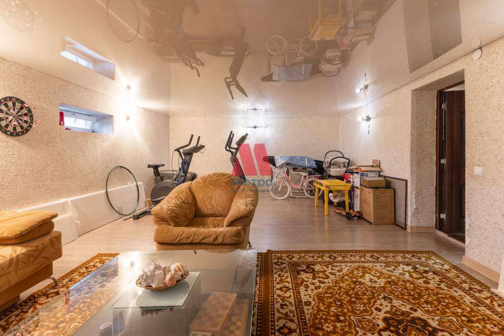 Гараж на две машины, 7х6 кв. м, высота потолков 2,7 м., имеется слив для воды, что позволяет мыть автомобиль прямо в гараже. Над гаражем есть комната на всю площадь гаража.