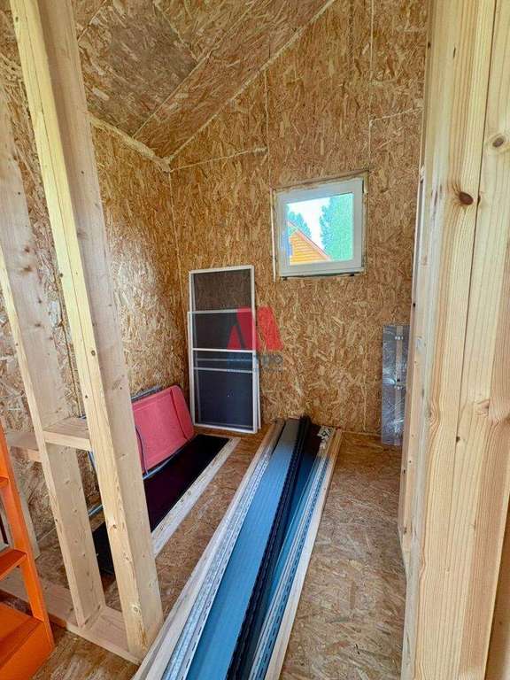 На земельном участке новая хоз. постройка, удобно складывать садовые принадлежности. В сарайку подведено электричество, от нее можно провести в дом (провода на дом все есть) . Воду можно подключить от центральной скважины, некоторые соседи используют колодец.