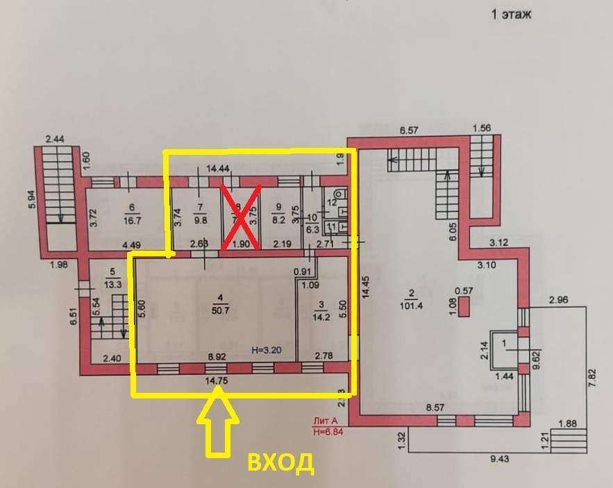 - 1 этаж в 3-этажном доме