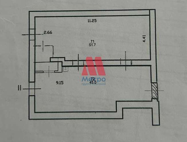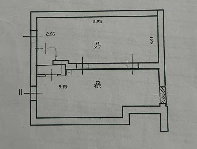Объект имеет 2 отдельных входа и состоит из 2 залов 51,7 кв. м. и 45 кв. м., соединенных между собой проходом.