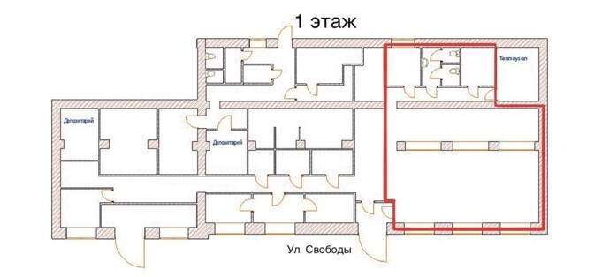 - 1 этаж: 180 + 120 (126) м с отдельными входными группами с ул. Свободы.