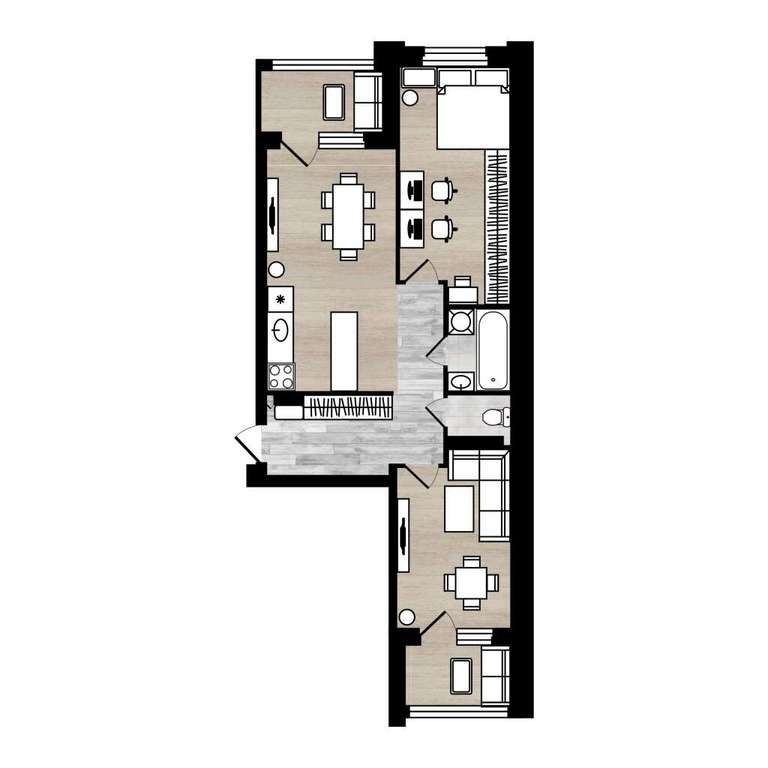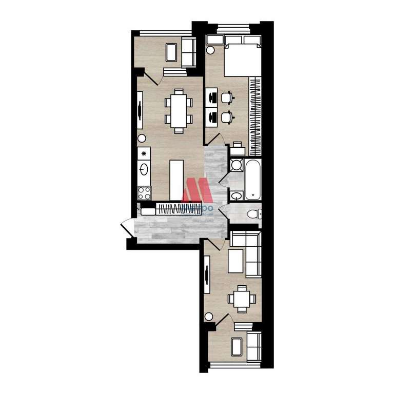-планировка с большой кухней-гостиной и изолированной комнатой;